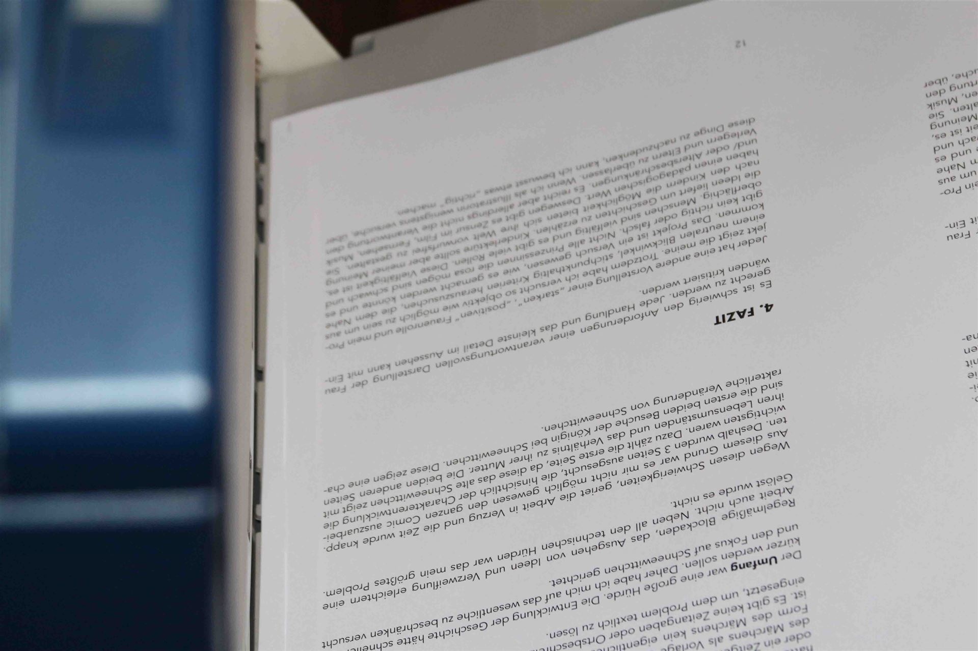 Softcover bezeichnet ein Buch mit hochwertigem flexiblem Umschlag. Bei dieser Variante der Buchherstellung werden die Rohbögen am Bund leicht angefräst und mithilfe eines Klebstoffs (Hotmelt oder Dispersionskleber/PUR) mit dem Umschlag verbunden. Dieser Vorgang wird auch Lumbecken genannt. In der Regel wird bei uns ein 300 g/m² Umschlag verarbeitet, der dann farbig bedruckt und gegebenenfalls noch veredelt wird. Bei uns kommen die verschiedensten Papierstärken und Papierqualitäten zum Einsatz. Extraleistungen wie Lektorat, Satz und Layouten oder Scannen bieten wir Ihnen zu absolut moderaten Preisen an. Bei uns sind Sie in guten Händen. Wir unterstützen Sie bei der preislichen und fachlichen Optimierung Ihres Projekts! Nutzen Sie unsere Erfahrung.